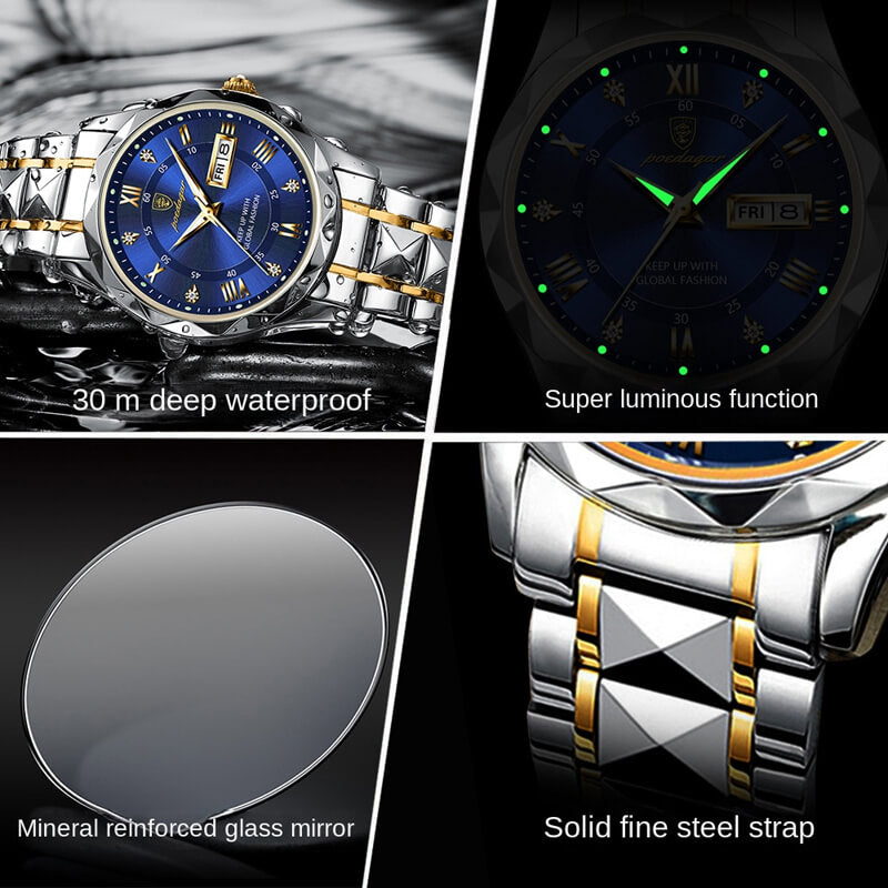 ⌚️ POEDAGAR 615 — Luxury steel, week/date display & 3ATM water resistance
