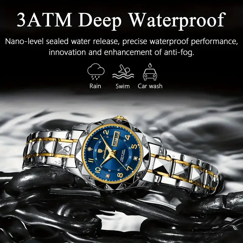 Dress it up or rock it daily — classic blue/black dial with diamond-style markers. ✨